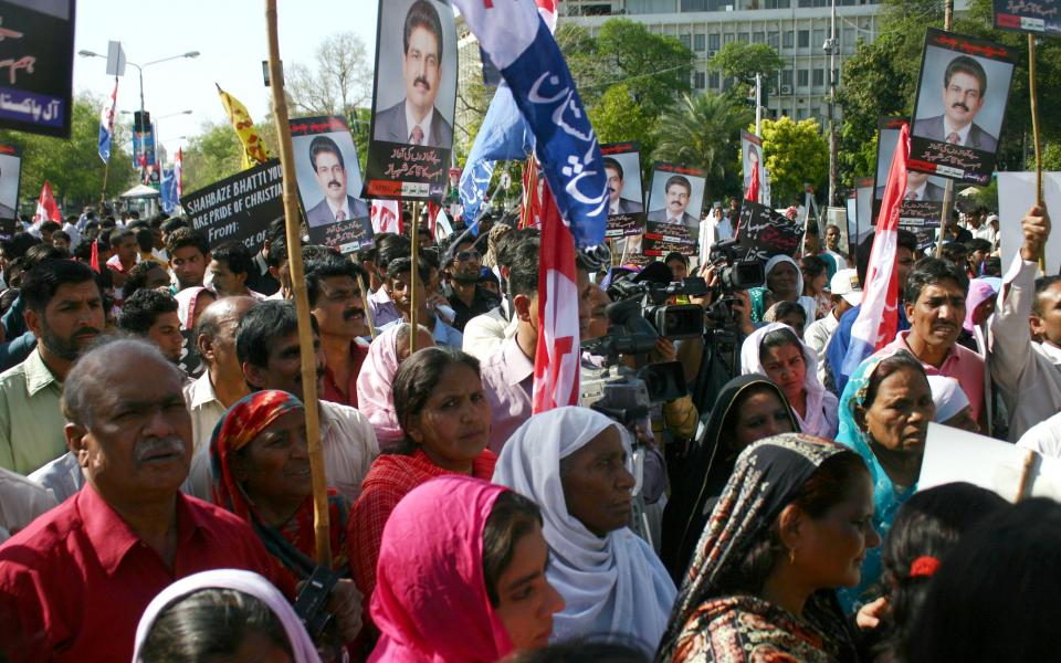 On 3rd April 2011 at 2: 00 p.m on the call of All Pakistan Minorities Alliance (APMA) hundreds people from all walk including women, youth and children with other civil society and United Religions Initiative (URI) Pakistan participated demonstrate angrily protest against the brutally Murder of Shahbab Bhatti. Demanded the Government to arrest the culprit and terrorist who murdered our Hero, who struggled for human rights, Minority’s right,promoter interfaith peace and harmony and who spoke against the misuse of Blasphemy law. The below data who suffered with misuse of Blasphemy law.